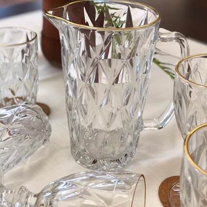 Conjunto Jarra e 6 Copos Diamond Borda Dourada – Gamma