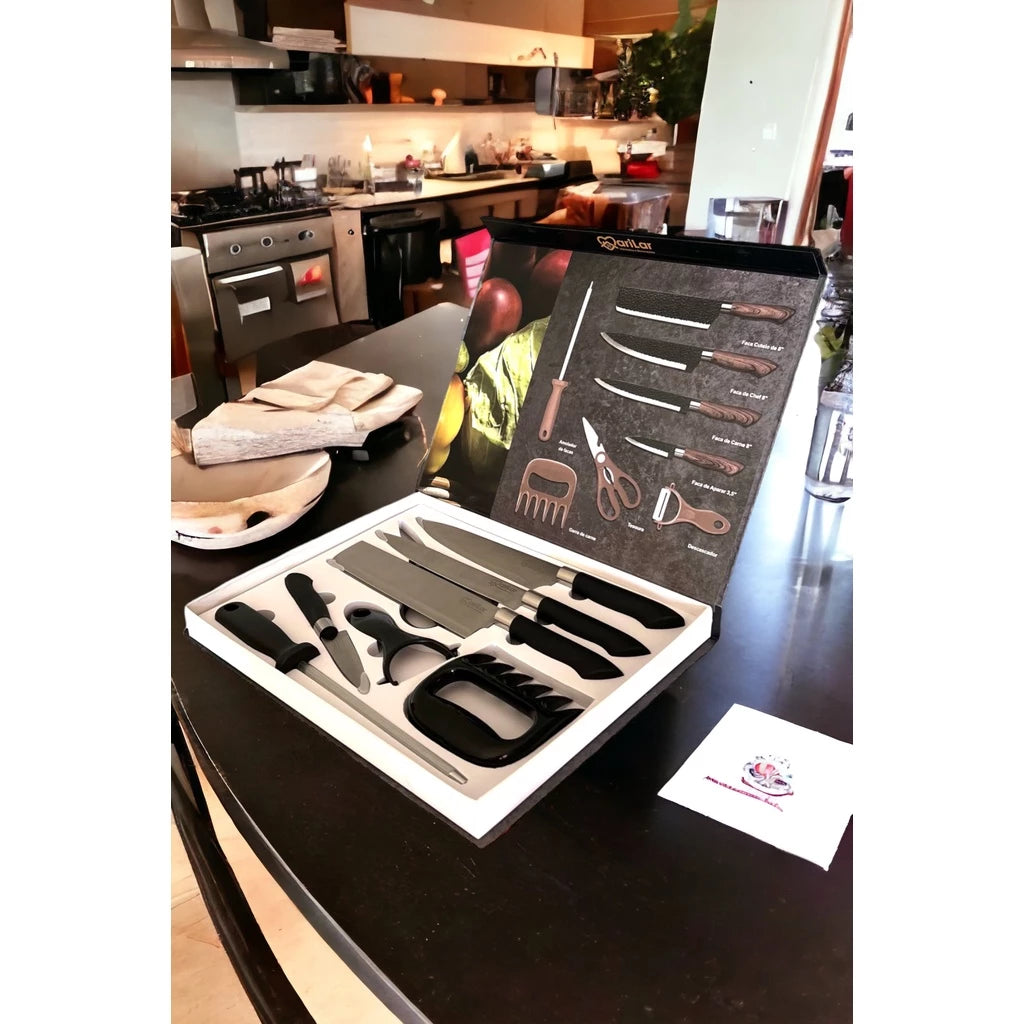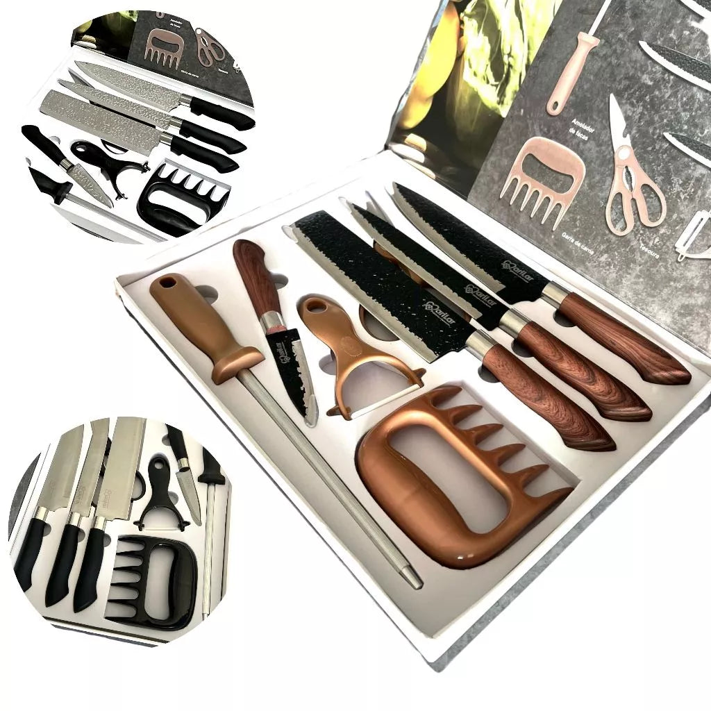 🍴 Kit Conjunto de Facas Aço Inox + Descascador + Tesoura + Garra e Amolador – 8 Peças