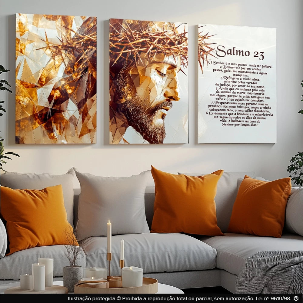Design em painéis de 3 peças que se complementam, criando um efeito sofisticado.